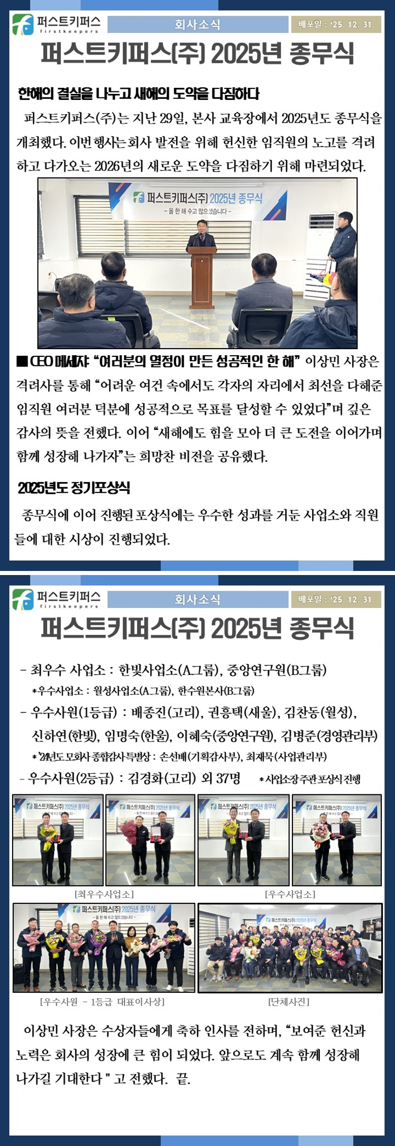 퍼스트키퍼스(주) 2025년 종무식 | 관리자 | 37 | 2025-12-31 |